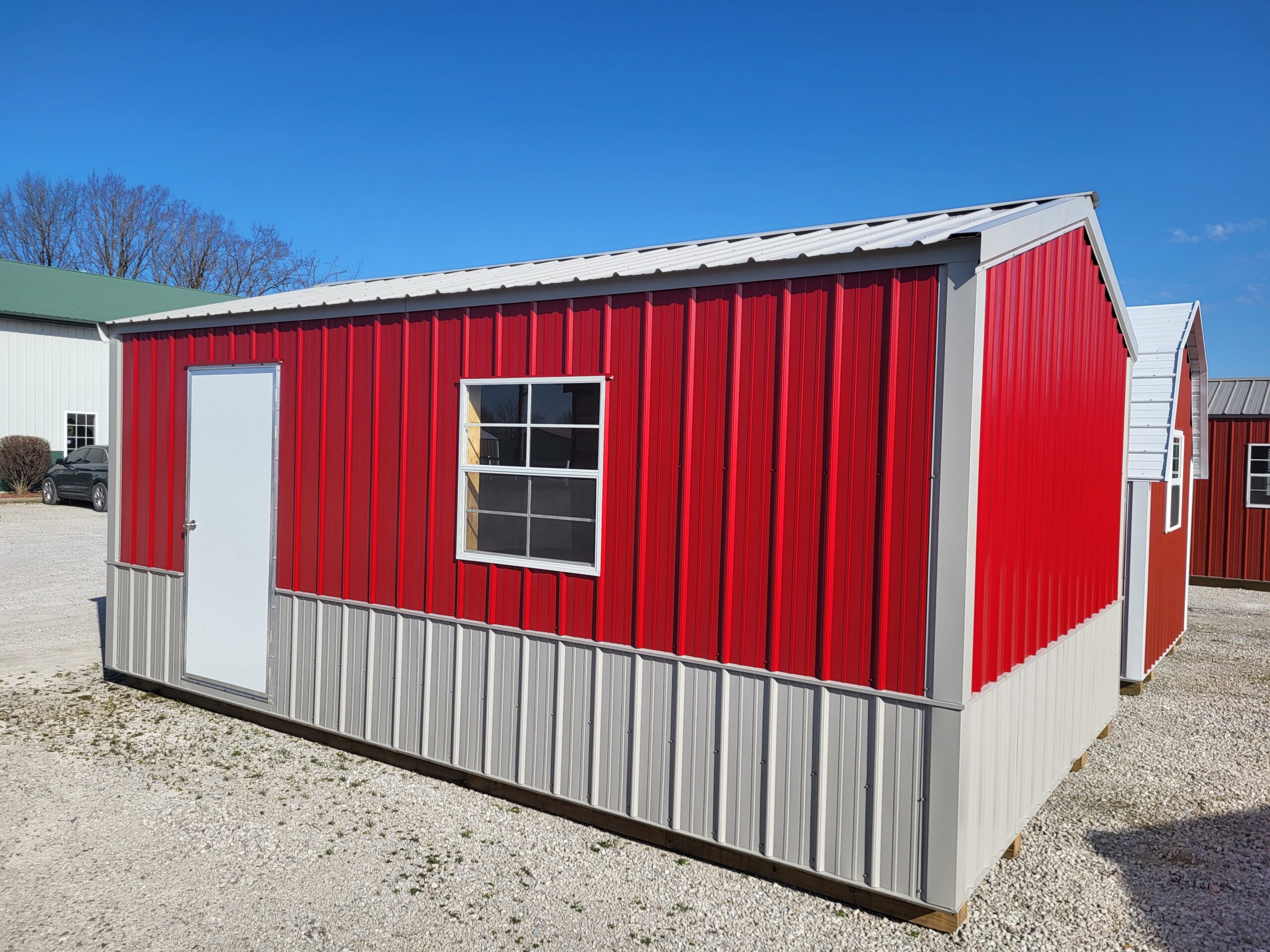 Advantech flooring, Silvercote insulation wrap, 3068 aluminum entry door, 9×7 OH garage door, 2-3030 windows, 8′ workbench, 12′ shelf, electrical, wainscot